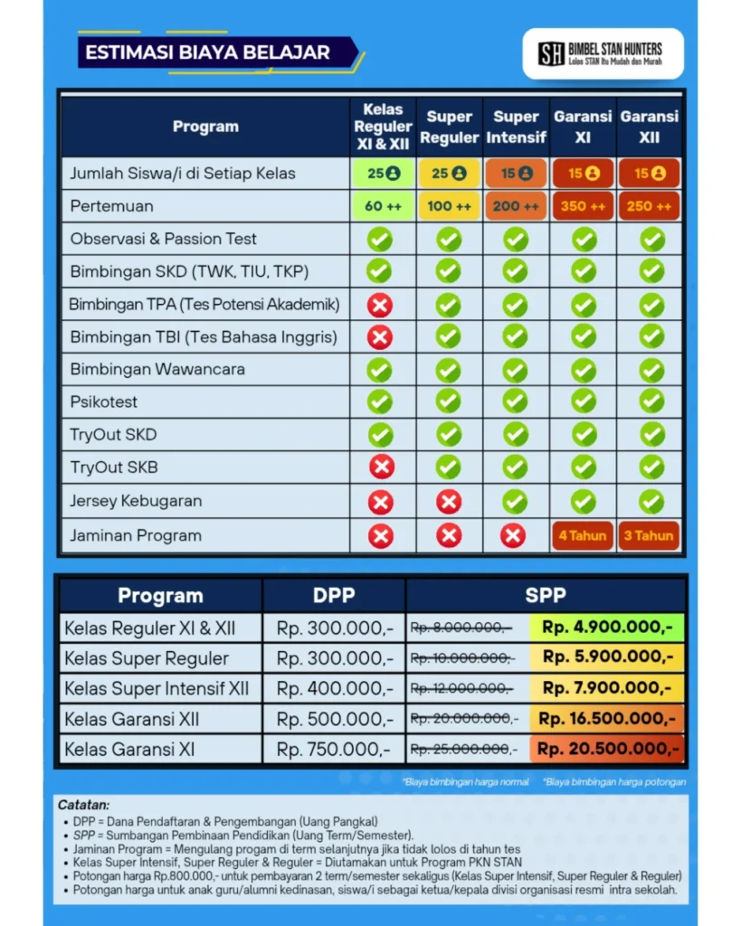 Bimbingan belajar Super Reguler dengan minimal 100 pertemuan